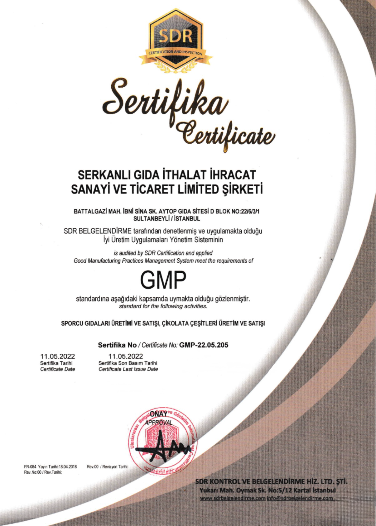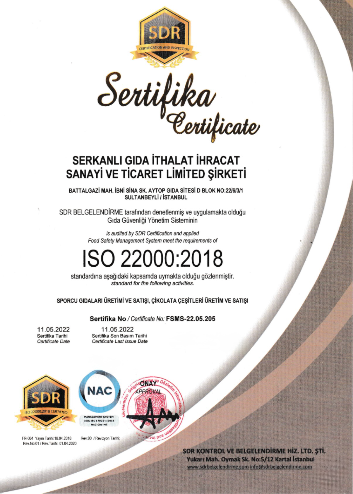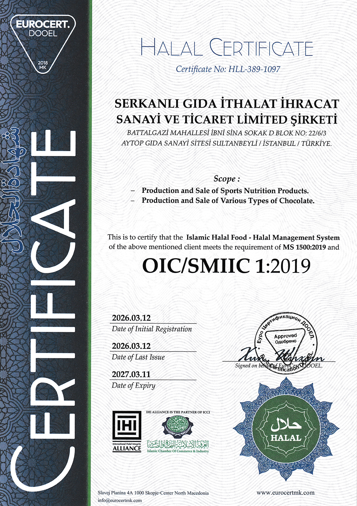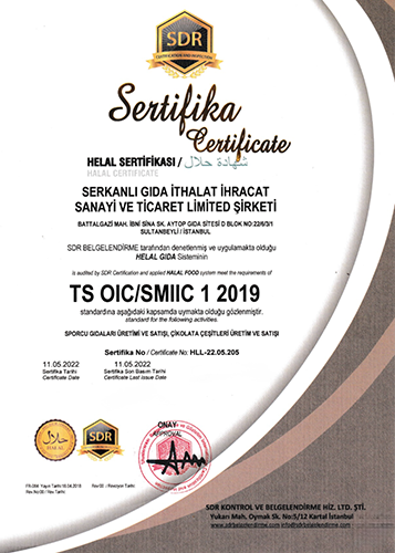 Ronic Nutrition dünyanın en güvenilir Denetleme Kurumu olan SDR (Certification and Inspection) sertifikalandırma kurumu tarafından TS OIC/SMIIC 1 2019 "Helal Sporcu Gıdası Markası" olarak belgelendirilmiş ve ISO22000:2018 Gıda Güvenliği Sistemi ile de üretimin her aşamasında kontrol ve kalite onayı verilerek yüksek kalite standartlarında bir Türkiye markası olarak tescillenmiştir.