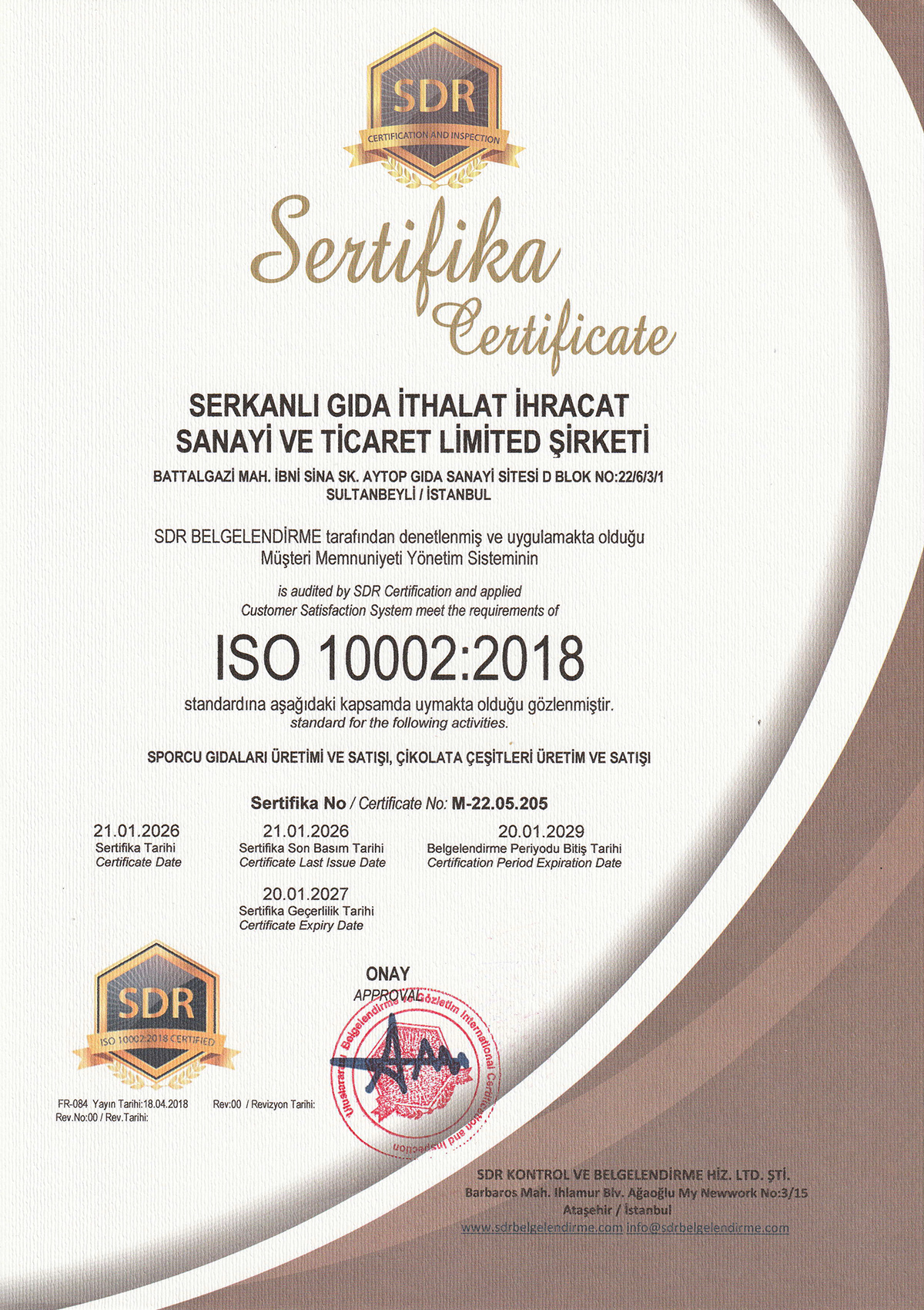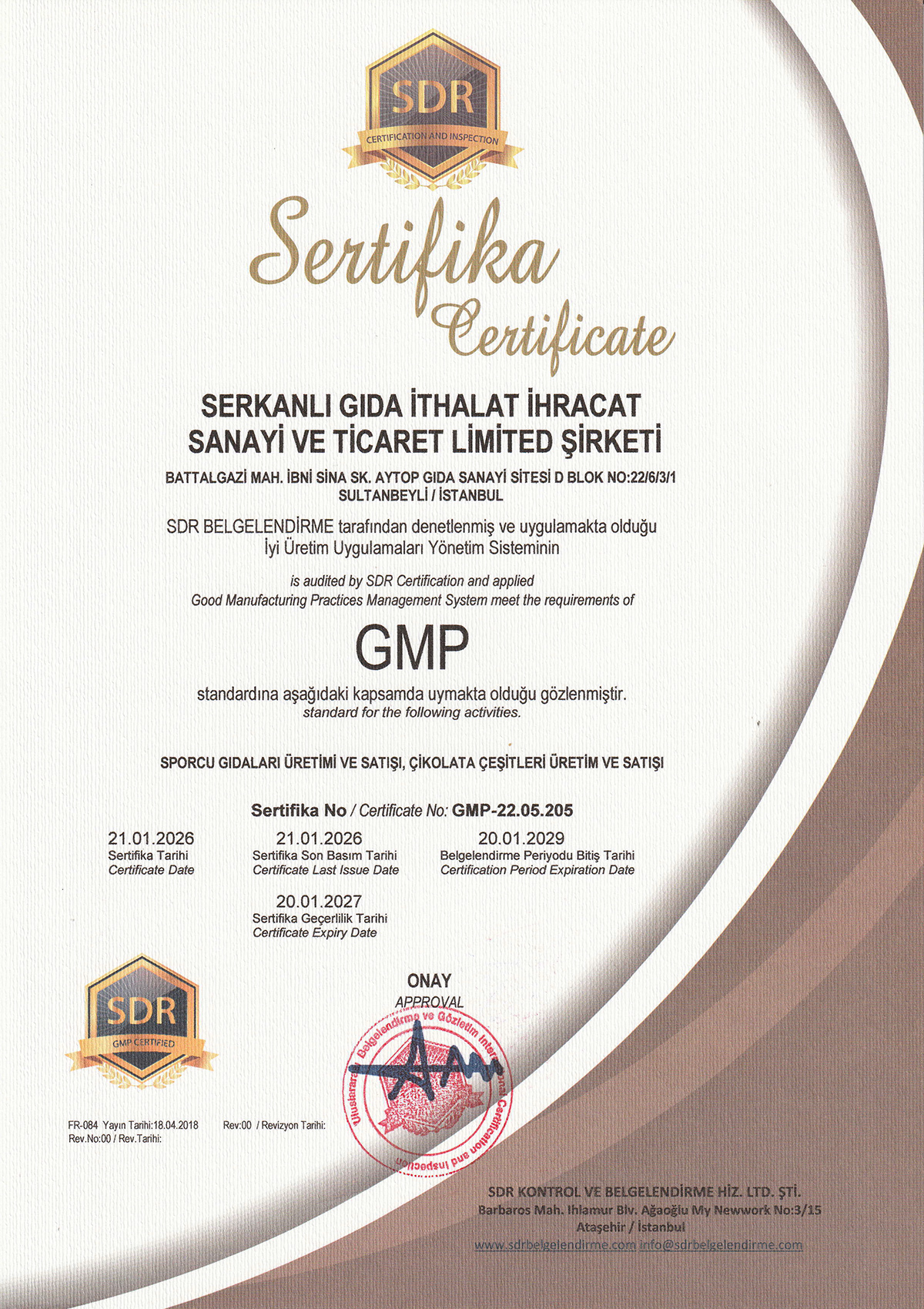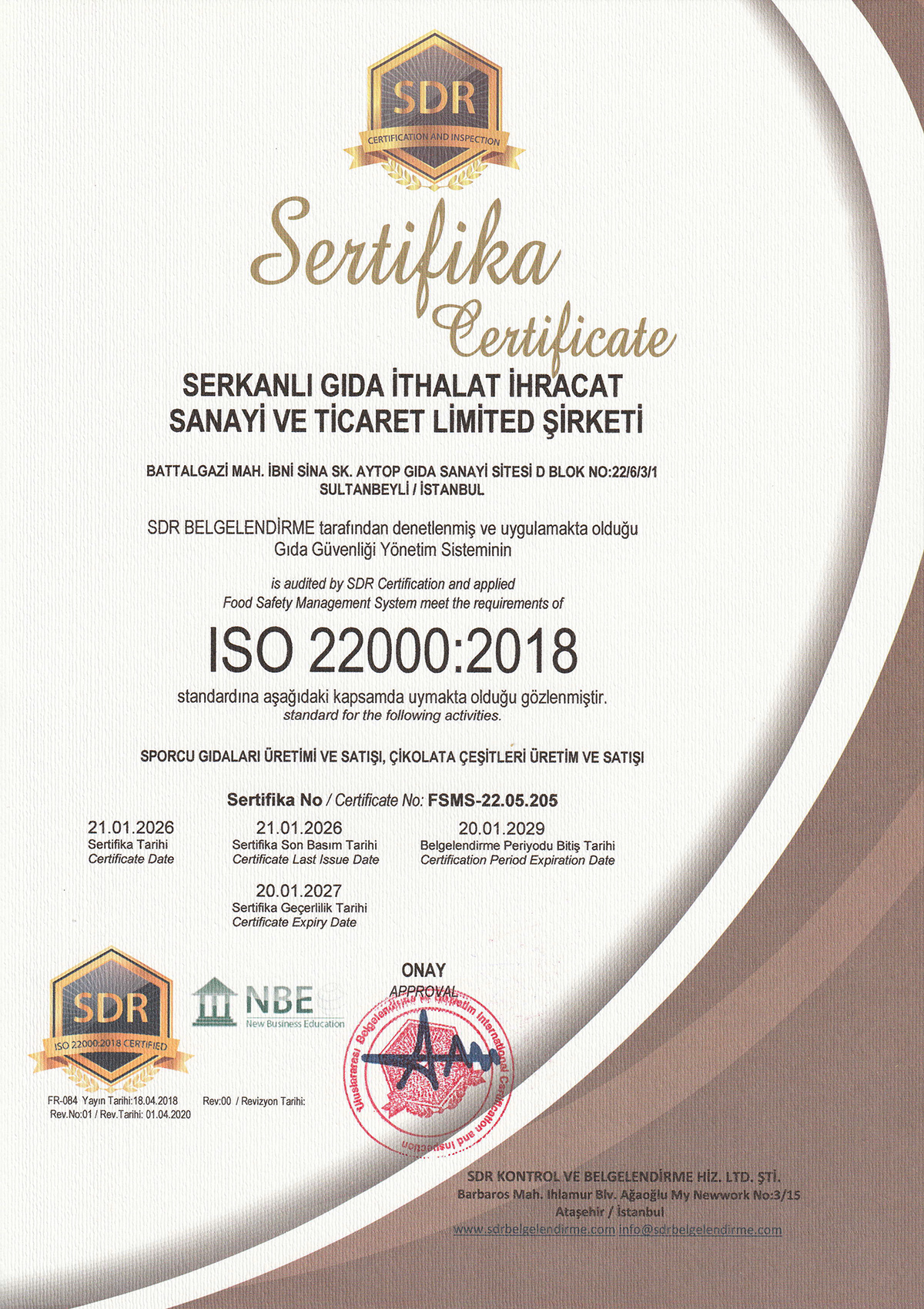 Ronic Nutrition dünyanın en güvenilir Denetleme Kurumu olan SDR (Certification and Inspection) sertifikalandırma kurumu tarafından TS OIC/SMIIC 1 2019 "Helal Sporcu Gıdası Markası" olarak belgelendirilmiş ve ISO22000:2018 Gıda Güvenliği Sistemi ile de üretimin her aşamasında kontrol ve kalite onayı verilerek yüksek kalite standartlarında bir Türkiye markası olarak tescillenmiştir.